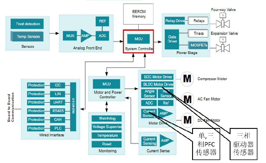 (3) .空调中电流传感器,用于压缩机电机(通常为无刷直流电机) 驱动电路,